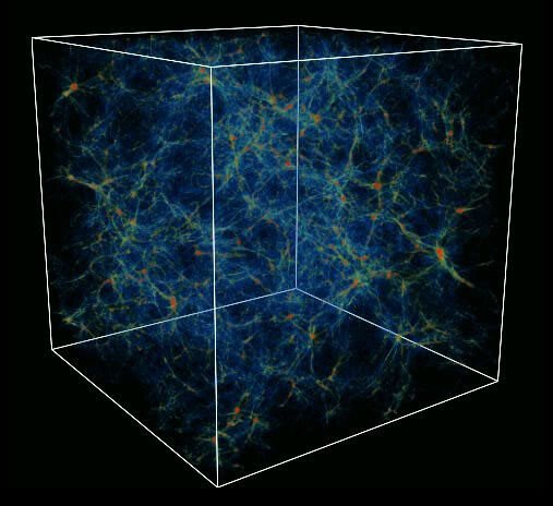 Zoom way out and galaxies trace a webby structure: bright knots linked by tendrils around cavernous voids. Voids steadily empty as matter flows toward the filaments and clusters, subtly amplifying the large‑scale pattern. Expansion helps this process, stretching low‑density regions faster than crowded ones.
