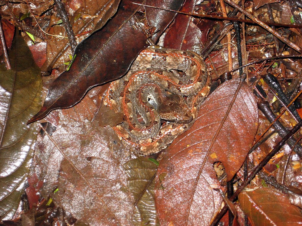 Male and female leaf-nosed vipers have evolved different approaches to their leafy disguise, creating a fascinating example of sexual dimorphism in camouflage. Males are typically smaller and more slender, allowing them to mimic younger, more delicate leaves. Their coloration tends toward lighter browns and yellows, matching the appearance of recently fallen foliage.