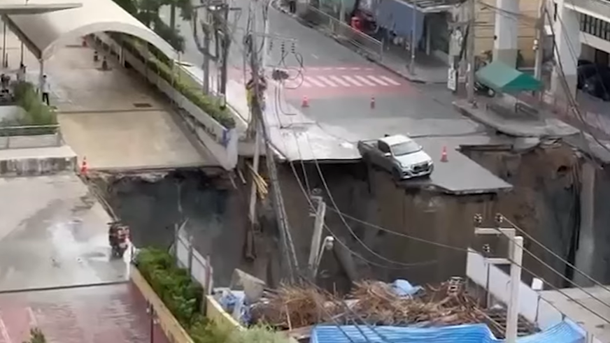 Analysts say the collapse appears to have arisen from the intersection of three stressors: active underground construction (particularly subway tunneling), a burst drainage or water main undermining soil support, and the saturation of Bangkok’s soft soils during monsoon season. As the road gave way, water from the ruptured pipe is believed to have accelerated erosion beneath the surface, pulling even more soil into cavities and causing a runaway effect.