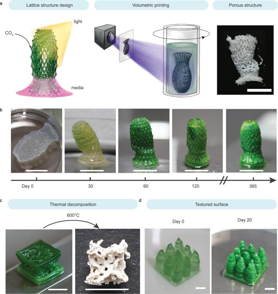 This breakthrough is based on a hydrogel that can be 3D-printed and is full of cyanobacteria, which are small organisms that have been improving photosynthesis for more than 2.5 billion years. This thing only requires sunlight, nourishment from the water, and CO₂ in the air to flourish. This is not the same as traditional carbon capture, which requires machinery that takes a lot of energy. After being printed into structures, the bacteria multiply and harden the material by adding calcium carbonate, which is like turning CO₂ into stone. Tests in the lab show that it can hold on to 26 mg of CO₂ per gram for more than 400 days. This is better than a lot of biological ways and just as good as industrial ones like turning old concrete into minerals.